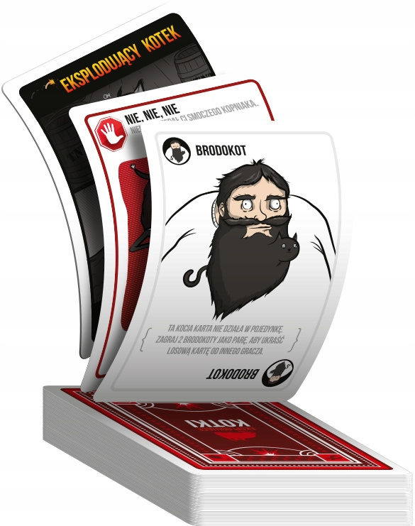 Spróbuj swoich sił w tej wysoce strategicznej, w pełni bezpiecznej wersji rosyjskiej ruletki! Podczas rozgrywek gracze co turę dobierają po jednej karcie, aż do momentu, gdy któryś trafi na puchatą bombę. Ów nieszczęśnik rozlatuje się na tysiąc kawałeczków i wypada z gry. Pozostałe karty służą do unikania eksplodujących kotków lub łagodzenia ich wybuchowego temperamentu.
