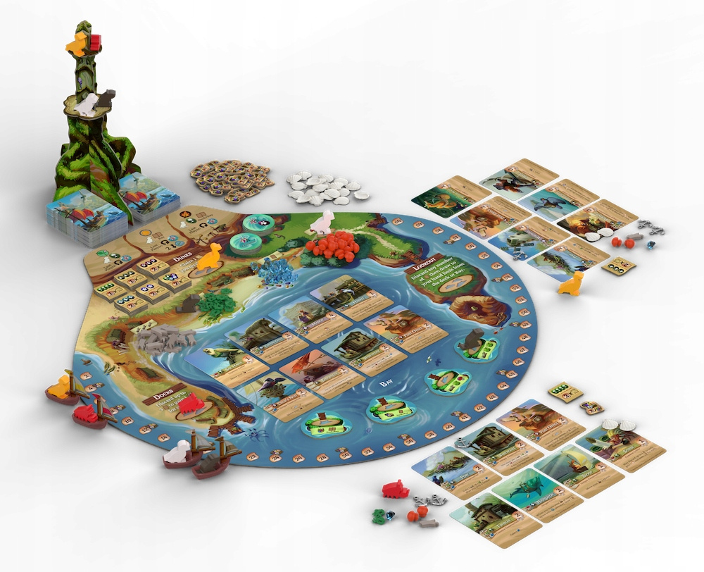 - Podczas rozgrywek będziesz wysyłać swoich robotników na różne pola akcji na planszy w celu zbierania surowców. Te z kolei posłużą Ci do zagrywania kart i budowania nadmorskiego miasta.