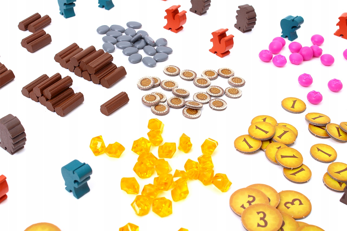 - W grze bardzo ważna jest sfera wizualna. Pole gry przypominające pień drzewa, pieczołowicie zaprojektowane żetony surowców, a do tego grafiki pełne uroczych zwierzątek w przeróżnych konfiguracjach i pomysłowych ujęciach. Kto nie lubi uroczych zwierzątek? :)