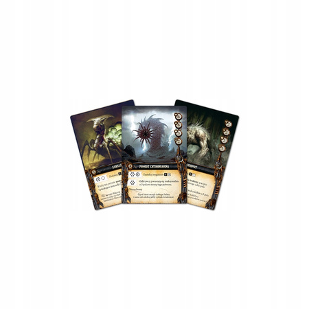 ● 8 kart i tekturowych figurek odkrywców ● 29 kart i tekturowych figurek potworów ● 35 kart rozdziałów ● 156 kart przedmiotów ● 60 wydarzeń odkrywców ● 60 wydarzeń grozy ● 13 kafelków planszy (dwustronnych) ● 34 żetony ran / odliczania ● 4 drewniane żetony zdrowia ● 4 drewniane żetony kondycji ● 4 drewniane żetony esencji ● 12 znaczników odkrywców ● 4 znaczniki grozy ● 12 tekturowych figurek zamkniętych drzwi ● 10 żetonów zniszczonych drzwi ● 56 żetonów zniszczenia / światła 2 żetony wejścia / wyjścia ● 3 drewniane żetony zagrożenia / rozstawiania / grozy ● 1 drewniany żeton poziomu potworów ● 3 kości mocnego ataku (k6) 3 kości słabego ataku (k6) ● 1 kość odnowy (k6) ● 1 kość gry (k10) ● 1 worek na kości ● 1 plansza rozdziału ● 4 plansze graczy ● 49 podstawek na figurki ● 4 arkusze pomocy ● 1 Zasady gry ● 1 Przewodnik