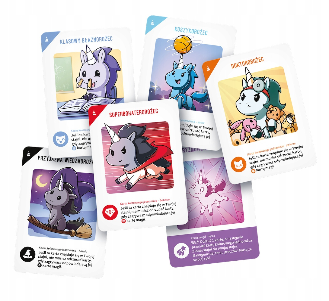 Odjechane Jednorożce od lat przyciągają uwagę dużych i małych fanów magicznych stworzeń. Jednak kaskadowe efekty i szybko zmieniająca się sytuacja na stole mogą być przytłaczające dla najmłodszych. Z myślą o nich powstały Odjechane Jednorożce dla dzieciaków – karcianka, która świetnie wprowadza do magicznego świata jednorożców i gier strategicznych. To gra dla 2–6 graczy od 6. roku życia z zupełnie nowymi postaciami i przesłodkimi ilustracjami, które pokochają dzieci (i nie tylko)!