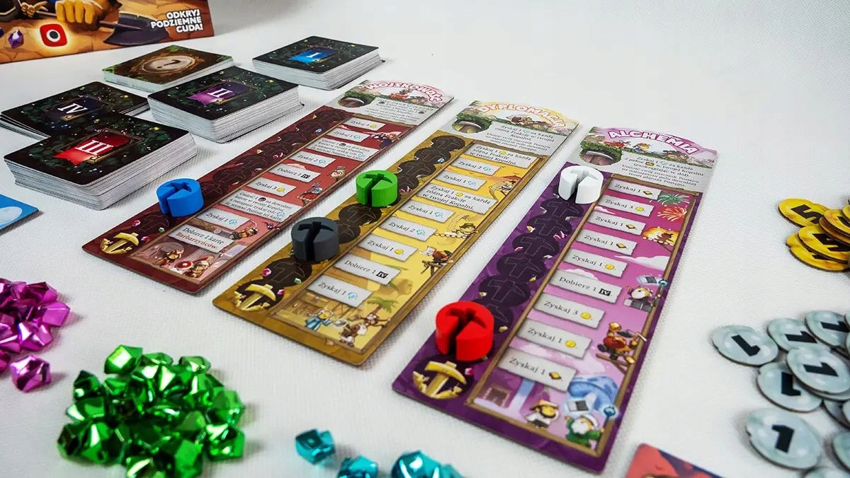 Warto awansować na torach Postępu! Czekają na nich bonusy, które pomagają rozwinąć kopalnię, aktywować powiązania między kartami, wykręcić jeszcze lepsze kombosy, albo zdobyć dodatkowe punkty zwycięstwa.
